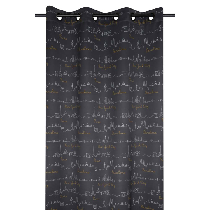 Плътно тъмносиво перде блекаут с артистични мотиви и капси за закачане на тръбен корниз, 140/260 см