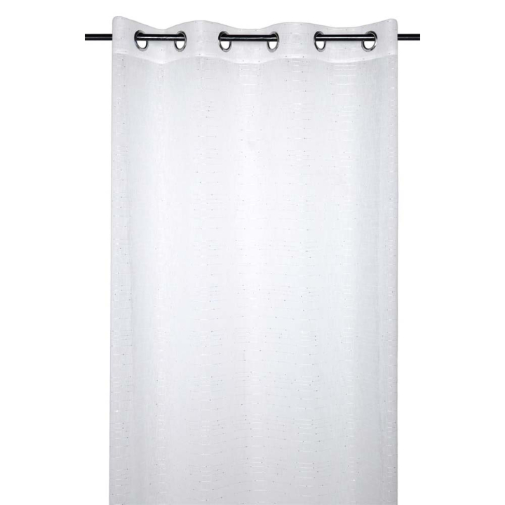 Тънко бяло перде със сребристи нишки с капси за закачане на тръбен корниз, 135/260см