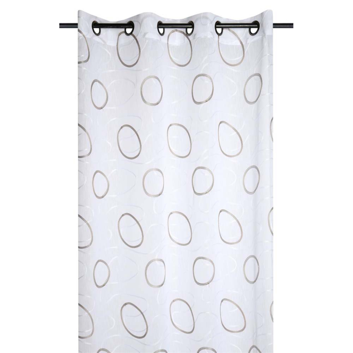 Тънко бяло перде с кръгове с капси за закачане на тръбен корниз, 140/260см