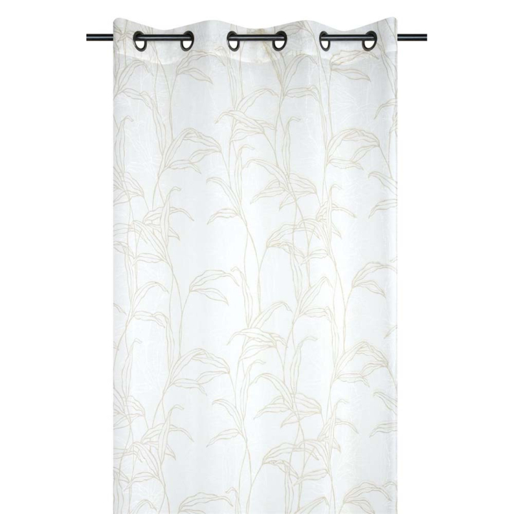 Тънко бяло перде с флорални мотиви с капси за закачане на тръбен корниз, 140/260см