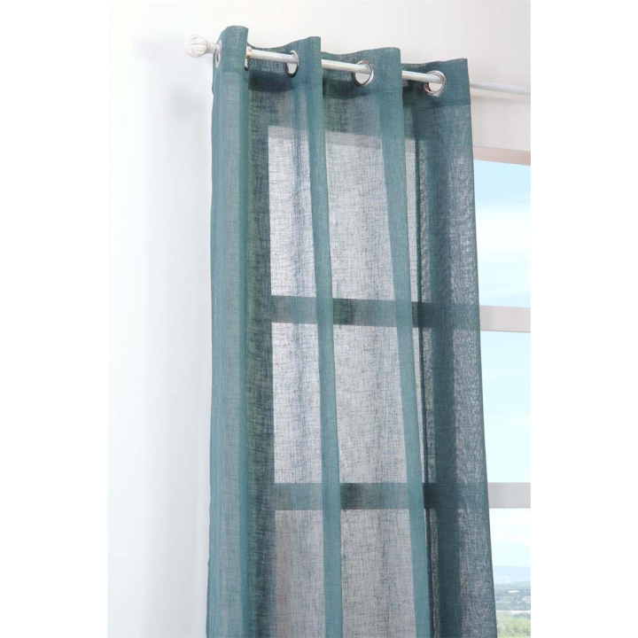 Тънко синьо перде с капси за закачане на тръбен корниз, 140/260см