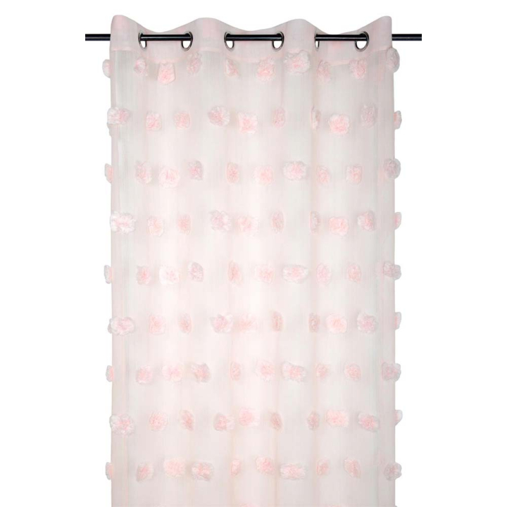 Романтично бяло перде с розови цветя с капси за закачане на тръбен корниз, 135/260см