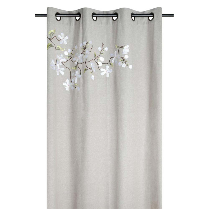 Плътно бежово перде с флорален акцент с капси за закачане на тръбен корниз, 140/260см