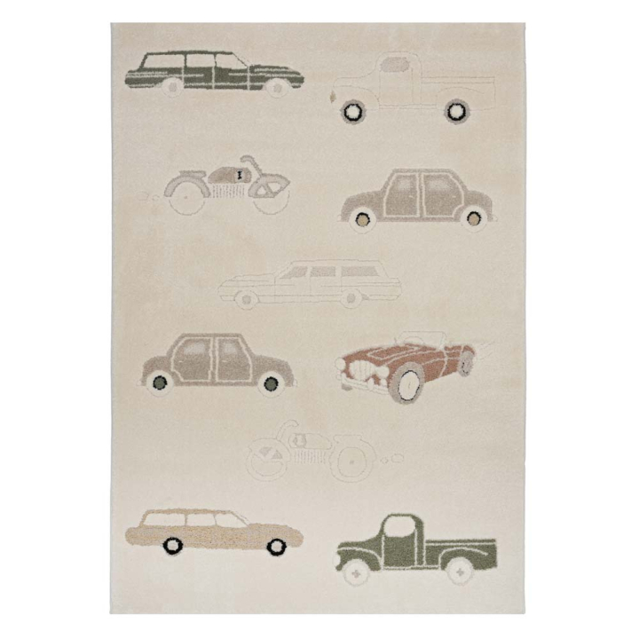 Детският килим е с дизайн с коли, идеален за забавление в стаята. Приветства децата да играят и да развиват въображението си. Бежовите нюанси създават хармонична атмосфера и комфорт в детската стая. Меката и издръжлива повърхност е лесна за почистване и устойчива на замърсявания.