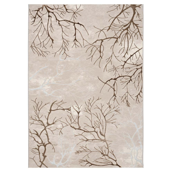 Килимът с деликатен флорален дизайн напомня силуети на клони и съчетава вдъхновението от природата с модерния стил. Нежната комбинация от бежови и кафяви тонове придава усещане за спокойствие и хармония, подходящо за всяко пространство – от дневна до спалня. Килимът е мек, приятен на допир и устойчив на износване. Лесен за почистване и поддръжка, той е не само красиво, но и практично допълнение към интериора.
