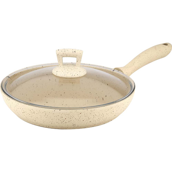 Бежов алуминиев тиган с незалепващо покритие гранит и със стъклен капак, Ф24 см