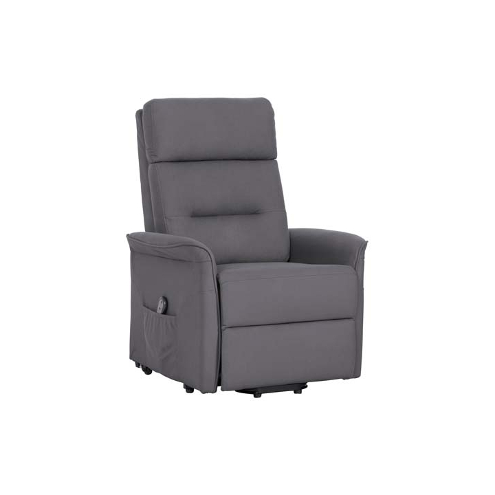 Модерен фотьойл с електрически реклайнер, с размери Ш:76/Д:82-161/В:110-85 см. Обгърнати в удобство и комфорт, този съвременен фотьойл ще се превърне в любимо ви място за почивка. Комбинацията от удобни обемни възглавници на седалката и облегалката, тапицираните подлакътници с пълнеж от пяна, електрическия реклайнер, както и висококачествената дамаска гарантират комфорт за приятни занимания (четене на книга, гледане на телевизия) и релакс. Под десния подлакътник е обособен страничен джоб за съхранението на малки предмети. С електрическия реклайнер вграден във фотьойла, без никакво усилие ще поставите тялото от седнало в полулегнало положение, за пълноценен релакс и почивка.