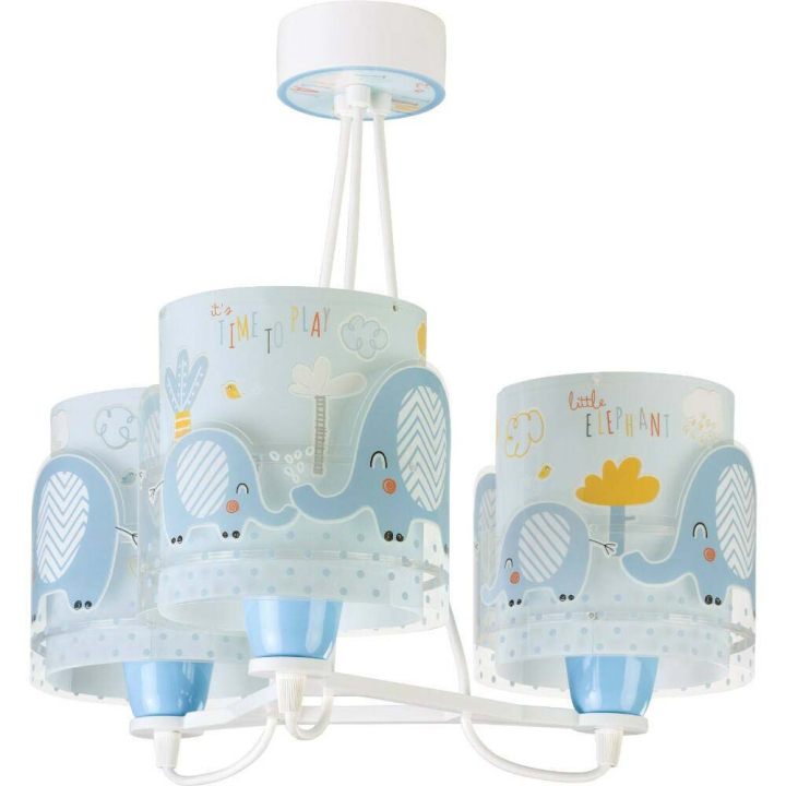 Пендел за детска стая в бяло и синьо - малките слончета, 3х15W, LED, E27.
