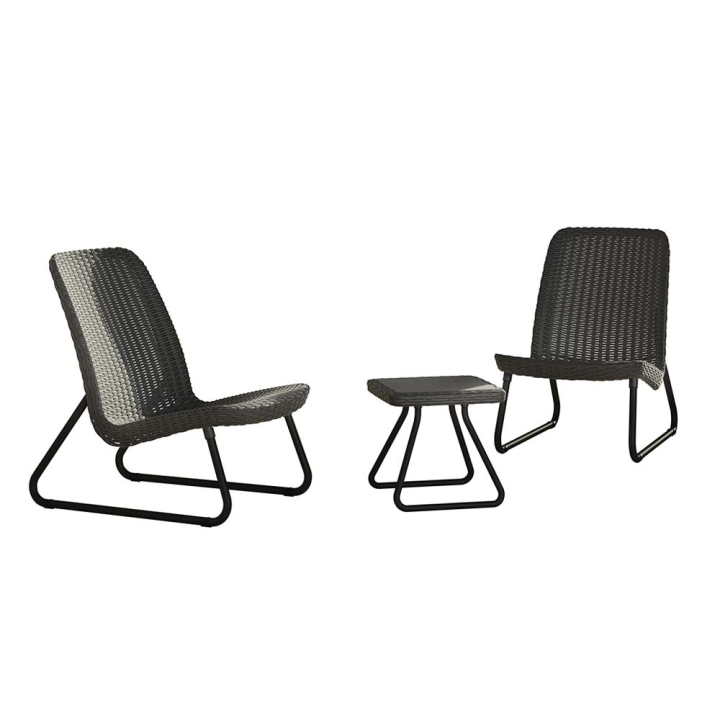 Красивият сет е подходящ за балкони и за малки тераси, тъй като не заема много място, а предлага търсеното удобство за вашите моменти на открито. Дизайнът е модерен, универсален и в адаптивен сив цвят, чудесен за всеки стил в пространството. Материалът е устойчив и издръжлив, неподатлив към неблагоприятни атмосферни влияния и UV лъчи.