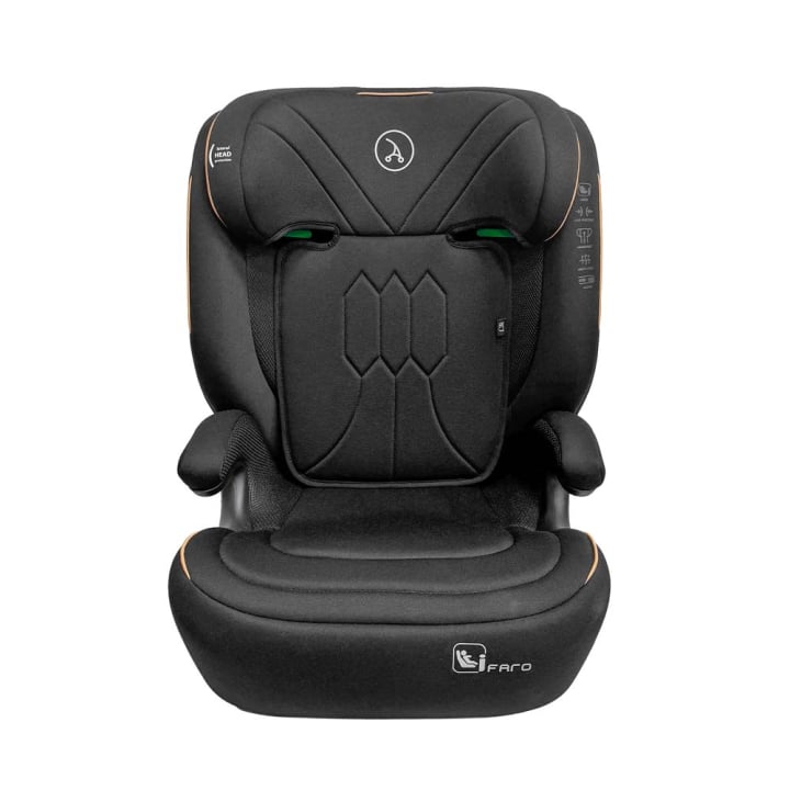 FARO е изработено с твърда основа и страници, които предпазват при инцидент и абсорбират удара. Коланът и облегалката за глава предпазват максимално и напълно отговарят на i-Size стандарта за безопасност.
