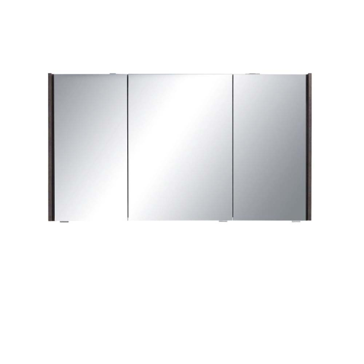 Висококачествен и стилен горен шкаф с 3 огледални врати и LED осветление. Корпусът е изработен от влагоустойчив ПДЧ с меламиново покритие, декор Оксид Ферро.