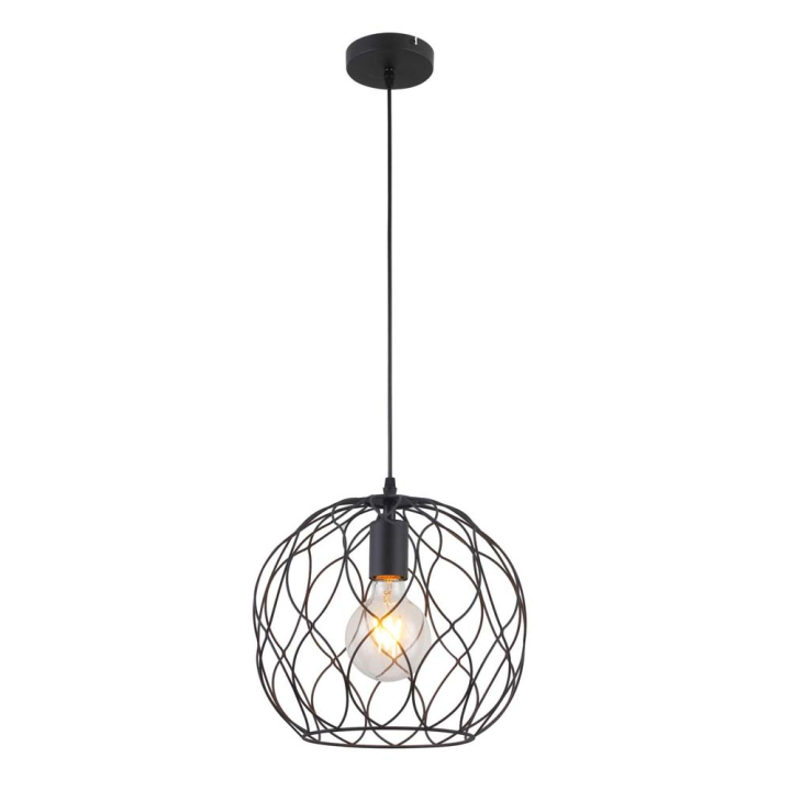 Черен метален пендел с решетъчен абажур 1х40W, E27, 30/120 см
