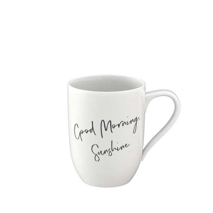 Свежият надпис, изобразен с небрежен почерк, зарежда с енергия още от сутринта и придава закачлив колорит на чашата.
