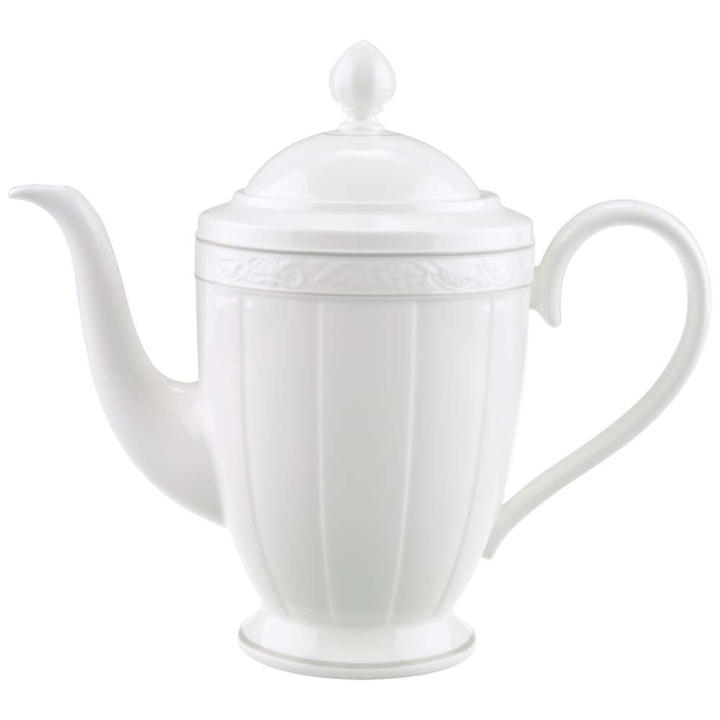 Блестящата перлена колекция с марка Villeroy & Boch излъчва чиста елегантност с изящното сребристо сиво, с мекото и завладяващо покритие. Деликатната флорална декорация от седеф, дискретният релеф на съдовете, вложената платина и кралската визия - всеки детайл е хармонично съчетан, достигайки до единно цяло от най-фин първокласен костен порцелан. Масата не само се превръща в облагороден оазис с висока естетическа стойност, тя се покрива с нежен воал, носещ класическа наслада и нотка ексклузивност по време на всяко сервиране. Луксозните моменти и красивата празнична подредба стават необходимост - за една различна емоция по време на хранене, обгръщаща мига ни в порцеланова феерия. Той придобива величествен ореол, декориран с комплект от тези магнетични чайници, чаши за топли напитки, плата, чинии и купи.