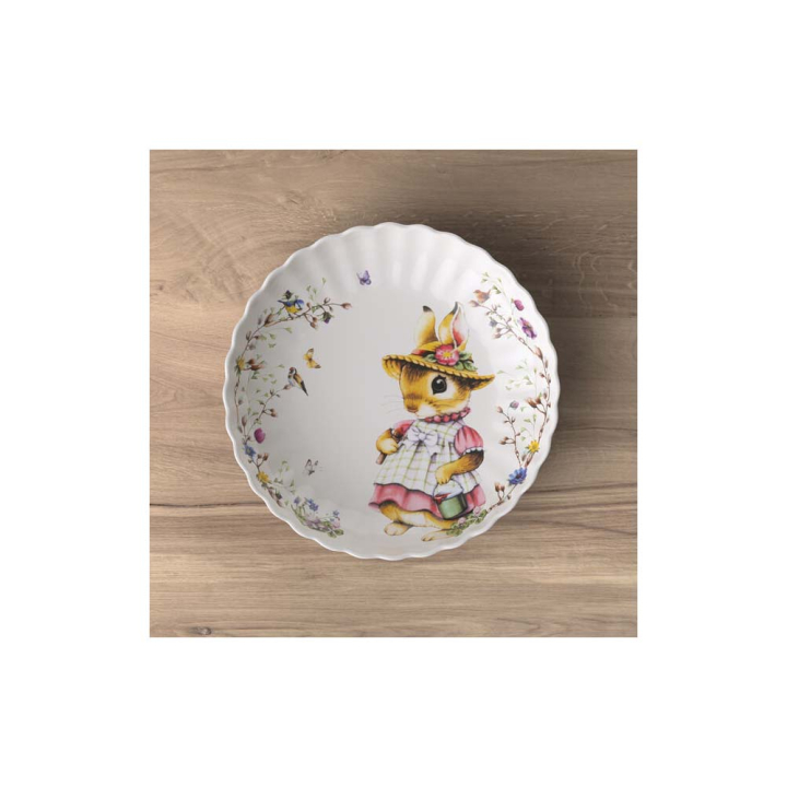 Порцелановата купа с мотив зайчето Анна принадлежи към лимитираната великденска колекция Annual Easter Edition на немския бранд Villeroy & Boch. Изработена е от премиум порцелан и декорирана с нежната фигурка на Анна, заобиколена от клончета с птички. Тя очарова с неподправено присъствие и топла, задушевна атмосфера при поднасяне на сутрешна козуначена закуска или обедна свежа салата с боядисани яйца.