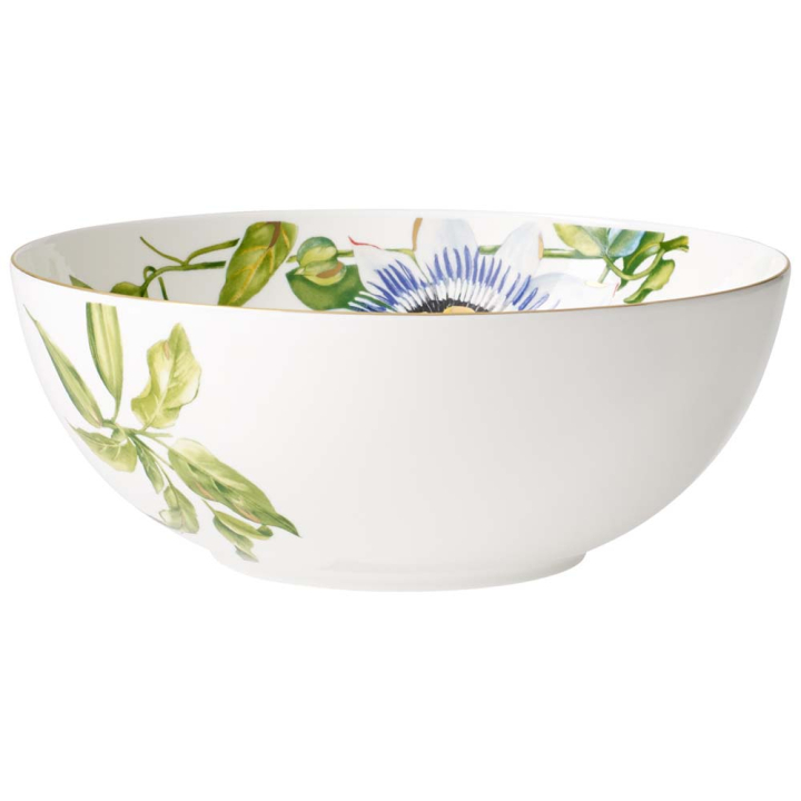 Красивата купа от колекция Amazonia на Villeroy&Boch е изработена от първокласен костен порцелан в цветен дизайн. Декорирана е с екзотичен мотив с фина златна линия.