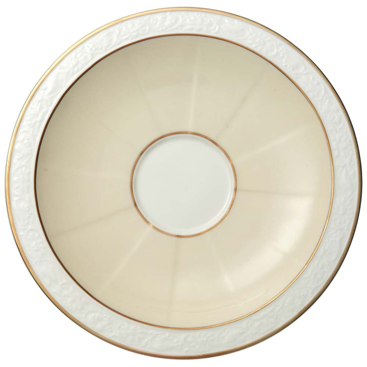 Чиния за чаша за кафе от колекция Ivoire, изработена от първокласен костен порцелан с декорация от злато, 1.35 л, 16/16/2.1 см