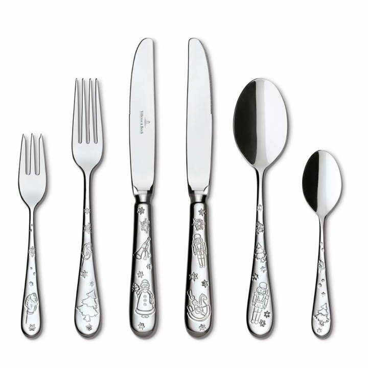 Коледен сет прибори за хранене от колекция Toy's Delight, изработени от неръждаема стомана с гравирани празнични детайли