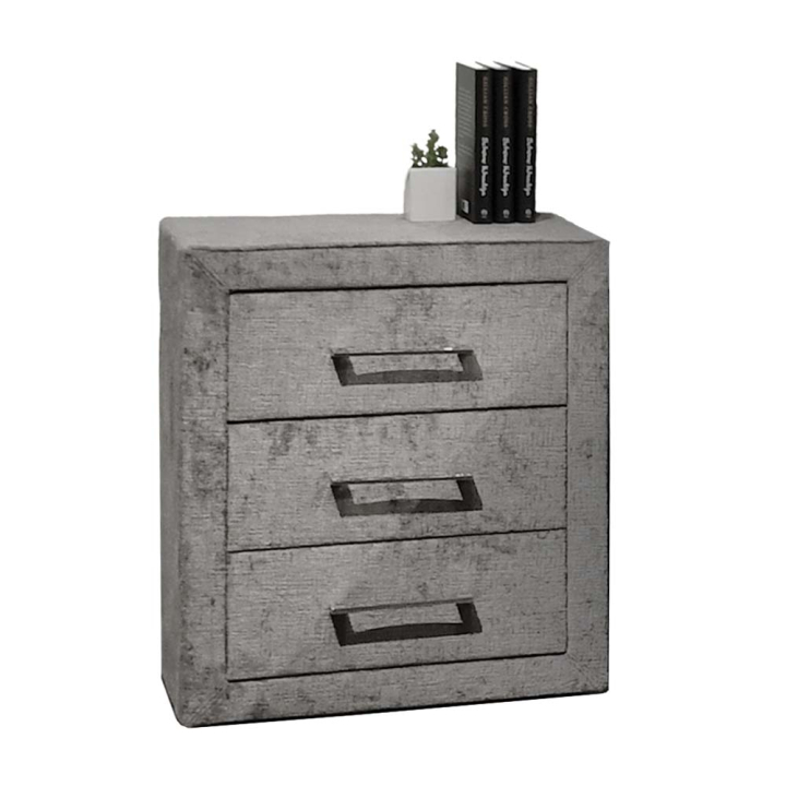 Нощно шкафче с размери Ш:55/Д:40/В:60 см. Моделът е зареден с чар и уют, създаващ атмосфера на висока стандарт и лукс. Шкафчето е с класическа форма, тапицирано с висококачествен текстил. Разполага с три чекмеджета за съхранение на лични вещи в спалнята. Шкафчето удачно може да се комбинира с легло Занзибар за създаването на идеалната атмосфера на домашен уют и комфорт.