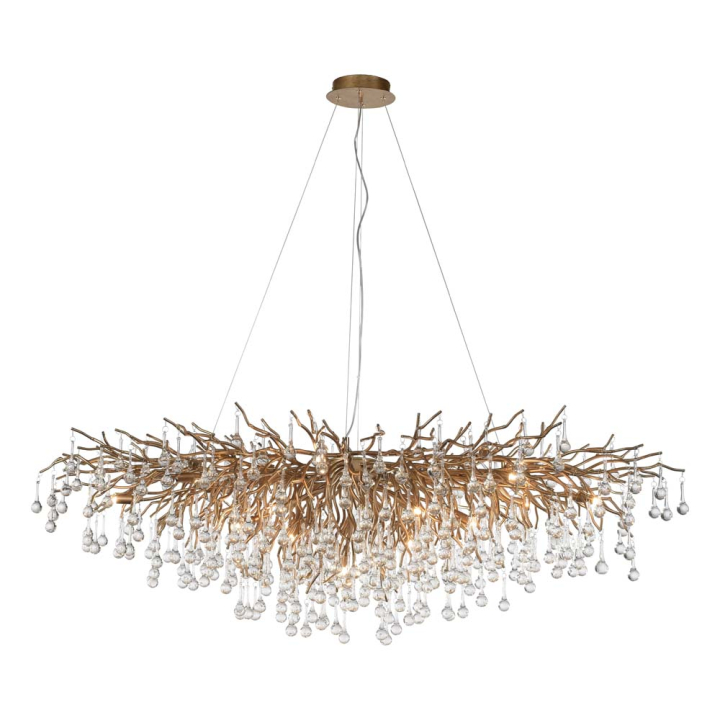 Съвършена форма на изкуство, въздействаща сензитивно и оформяща автентична зона в пространството. Полилеят е бижу, спуснато на фини въжета от тавана, представляващо композиция от елегантни месингово-златисти извивки, наподобяващи клони, с множество проблясващи кристали.