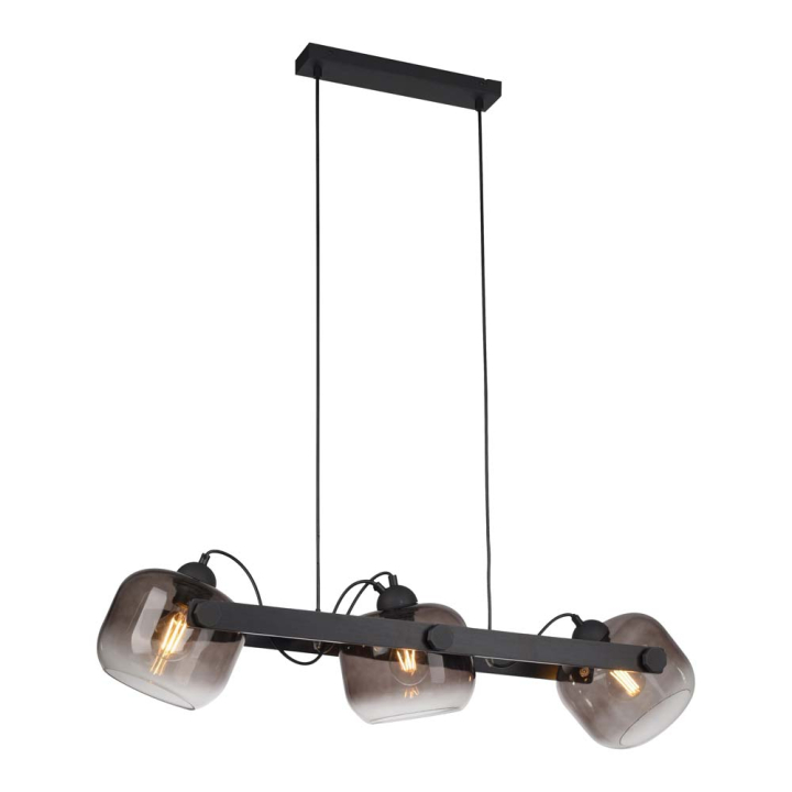 Полилеят с три абажура CUP 2 е красива комбинация от черно, лакирано дървои опушено стъкло. С модерен индустриален вид, този източник на светлина намира своето място както в хола или трапезарията, така и в други помещения. Абажурите могат да се регулират или подравняват по желание. Височината на светлината на полилея също може да се адаптира спрямо индивидуалните предпочитания.