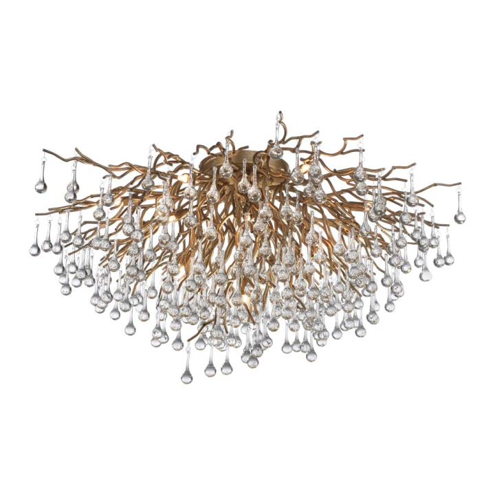 Съвършена форма на изкуство, въздействаща сензитивно и оформяща автентична зона в пространството. Плафониерата е бижу, представляващо композиция от елегантни месингово-златисти извивки, наподобяващи клони, с множество проблясващи кристали.