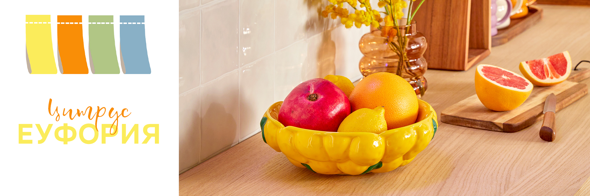 Време е за свежест, за пъстрота и феерия от цитрус аромати! Новата ни колекция, вдъхновена от любимите ни слънчеви дни в градината с лимонада или оранжада, ще утоли жаждата ти за смели интериорни решения и цветен живот!